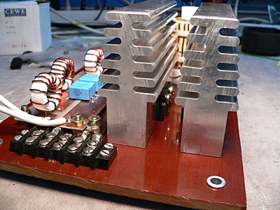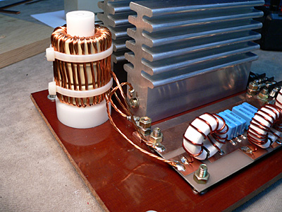 Nya mellanvågssändaren klar, närbild på ovansidan, FET-arna skymtar mellan kylflänsarna.