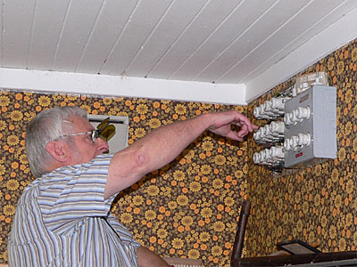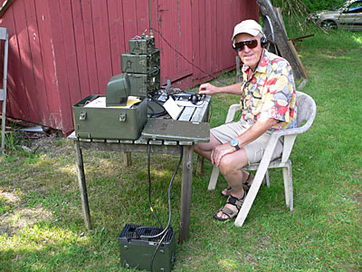 SM6AAL-Bertil, en lycklig gubbe framför sin gröna radio, en RA200!