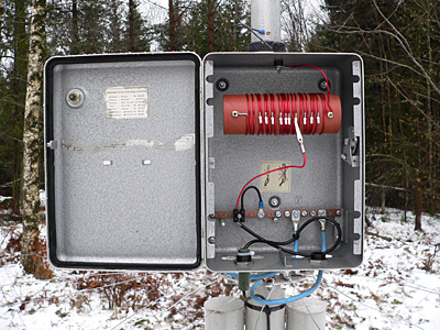 Apparatskåpet till vertikalen för 80 meter, vy underifrån