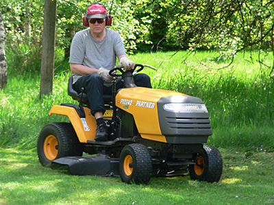 Klubbens överbefälhavare SM6YJG sveper över domänerna på sin åkgräsklippare.
